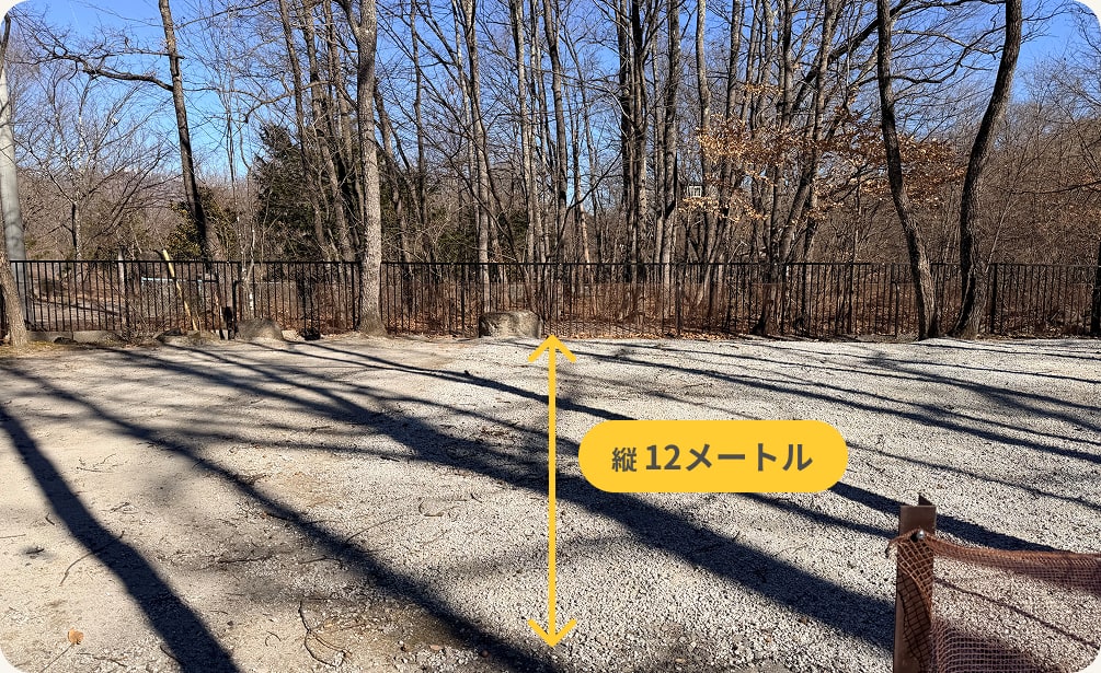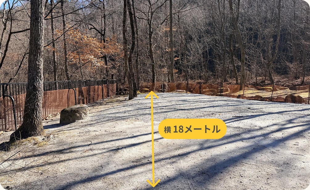 ノーリードで過ごせるスペースもあり、愛犬のペースで、のびのびとキャンプを楽しめます。サイトサイズは縦約12m×横約18mと、ゆったりとした広さがあります。